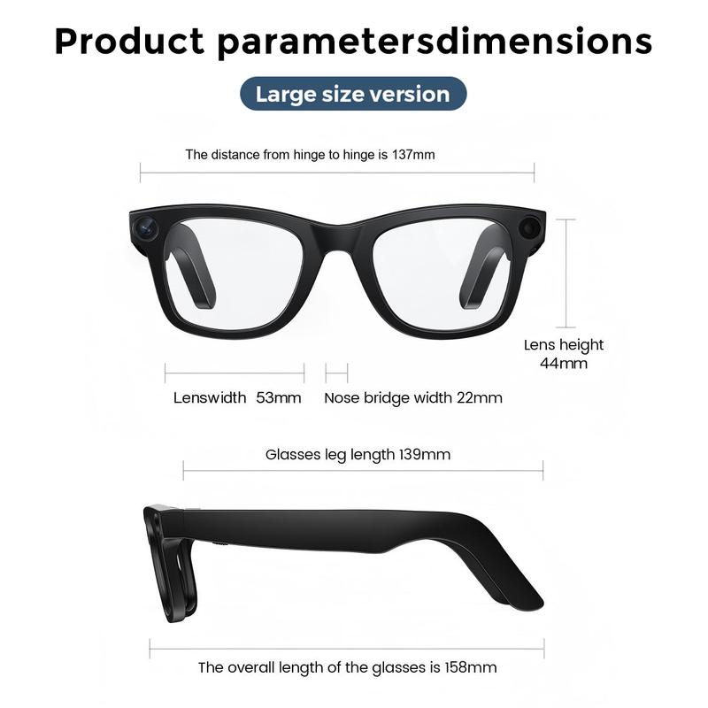 Ergonomic design, TR90 frames, and foldable legs make these glasses lightweight and easy to carry. Choose from clear or UV-protected lenses to match your style. Large Size Fit for Every FaceOur smart glasses come in a large size—perfect for broader faces! Here’s how it fits: